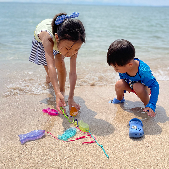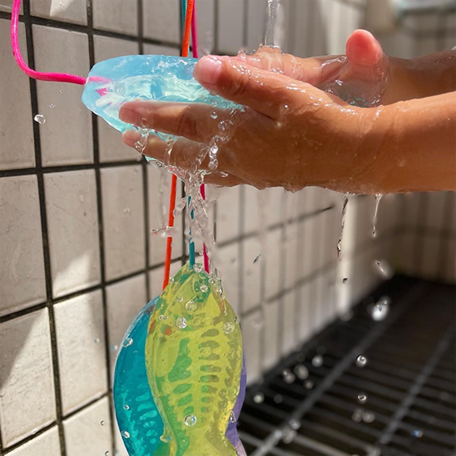 蛇口などに吊り下げて、洗面所やお風呂が楽しい空間に。